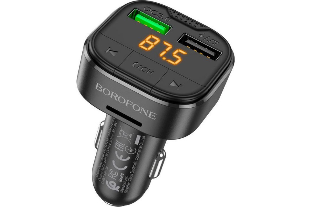 FM модулятор BOROFONE BC43 Flash 2 x USB Black (BC43B)