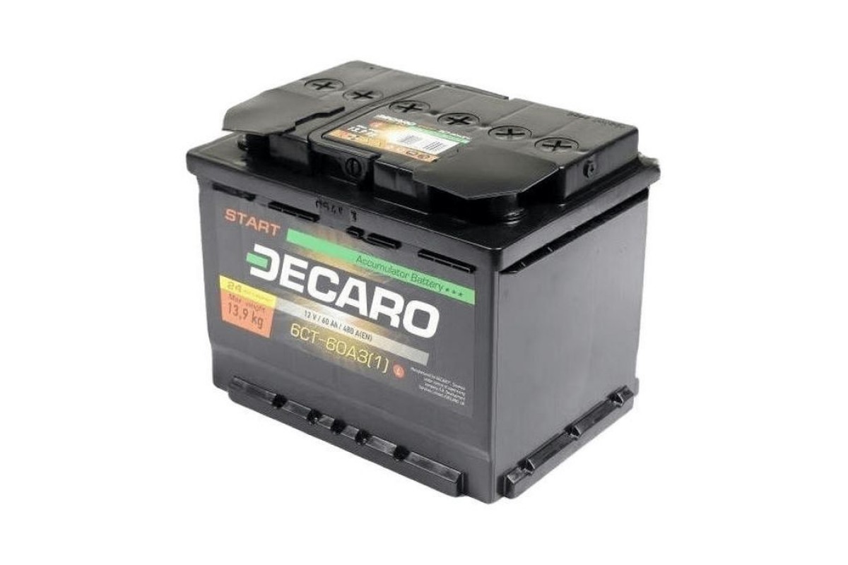 Акумулятор автомобільний DECARO 60Ah-12V START R, EN480 (6СТ-60 АЗ (0) S) - це вибір тих, хто цінує надійність і високу якість. З потужністю, яка забезпечується ємністю 60Аг, цей акумулятор здатен стабільно живити електрообладнання вашого автомобіля, гарантуючи його працездатність навіть при значних навантаженнях. Його номінальна напруга 12В відповідає міжнародним стандартам, що забезпечує його сумісність з більшістю сучасних легкових автомобілів.