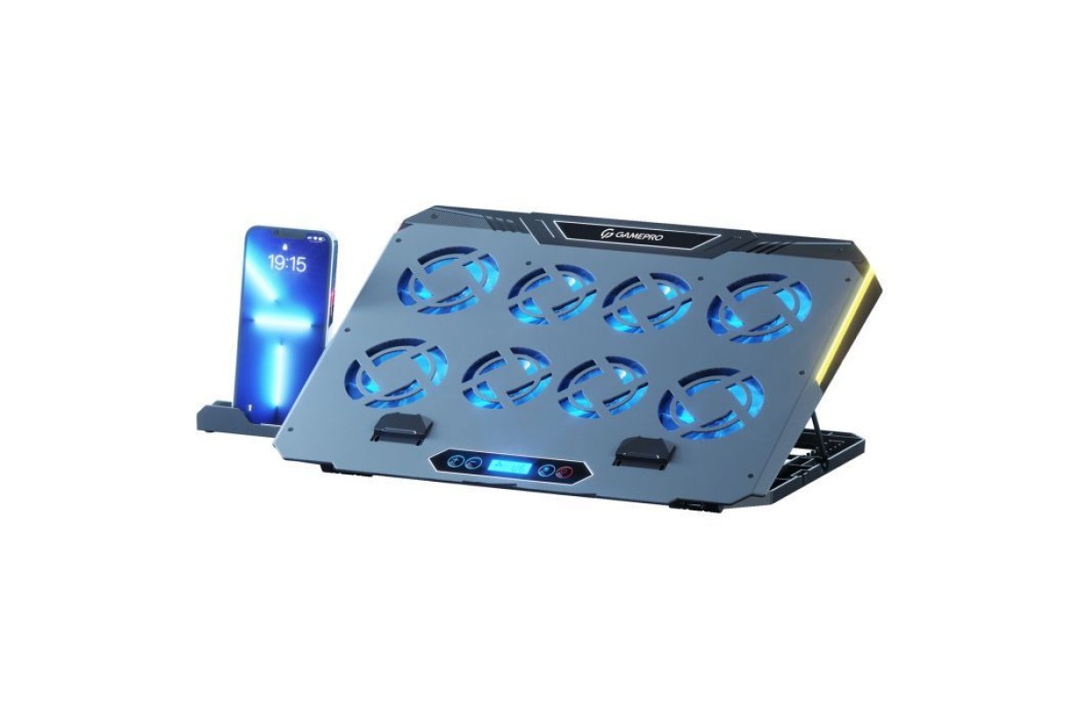 LCD-дисплей підставки відображає важливу інформацію, зокрема поточну швидкість роботи вентиляторів, що дає змогу легко контролювати температурний режим. Зручний інтерфейс управління робить налаштування максимально простим.