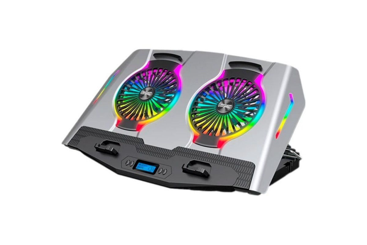 Підставка для ноутбука IceCoorel N9S — це ефективний аксесуар для охолодження ноутбуків розміром від 10 до 18 дюймів. Вона оснащена двома вентиляторами діаметром 125 мм, які працюють на швидкості 1400 об/хв, що забезпечує належне охолодження навіть при інтенсивному використанні. Корпус виготовлений з поєднання пластику та алюмінію, що надає йому легкість та міцність. Підставка також має два USB 2.0 порти для підключення додаткових пристроїв та LCD-дисплей для відображення інформації про стан охолодження.