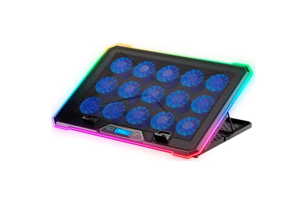 Підставка до ноутбука IceCoorel 10-19", 15*60mm 2550 RPM, 2*USB, + LCD, 415x296x28mm, RGB (K15D)
