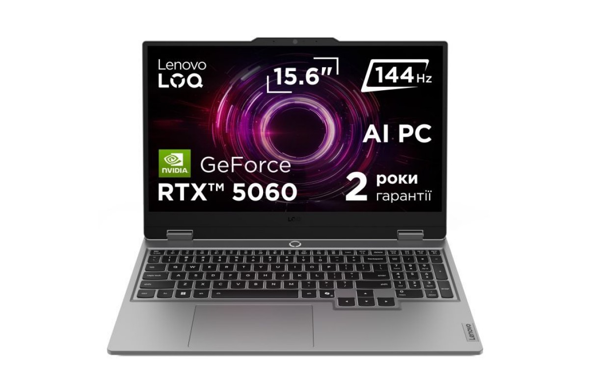 Непомітний вигляд, висока міцністьКорпус Lenovo LOQ кольору Luna Grey є гладким і міцним, виготовленим за технологіями аерокосмічної промисловості. Вебкамера з eShutter killswitch забезпечує миттєву конфіденційність, а індикатор RGB швидко показує ваш тепловий режим. Залишайтеся стильними та готовими до роботи з Lenovo LOQ.