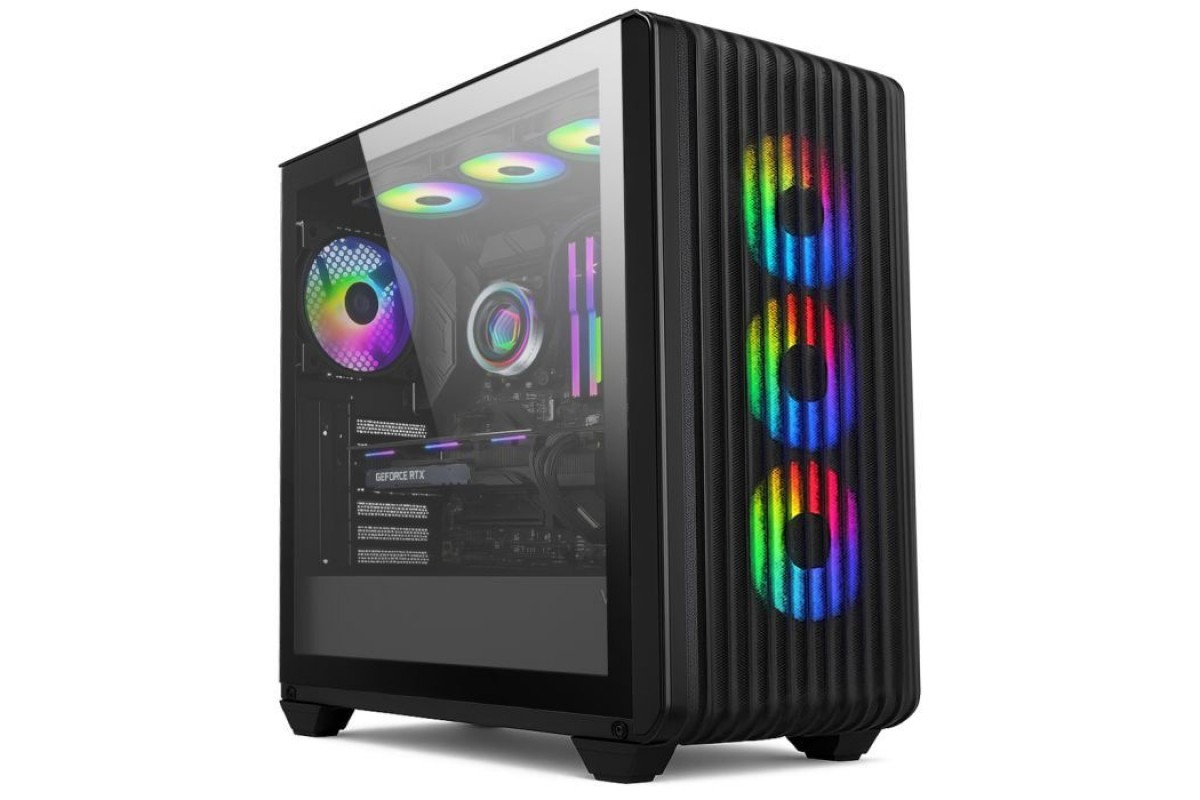 Дизайн комп'ютера виконано з акцентом на естетику та функціональність. Стильне вікно на боковій панелі дозволяє заглянути всередину корпусу, де кольорове підсвічування на передній, верхній та задній панелях, а також на кулерах, створює неперевершену атмосферу та підкреслює вашу індивідуальність.