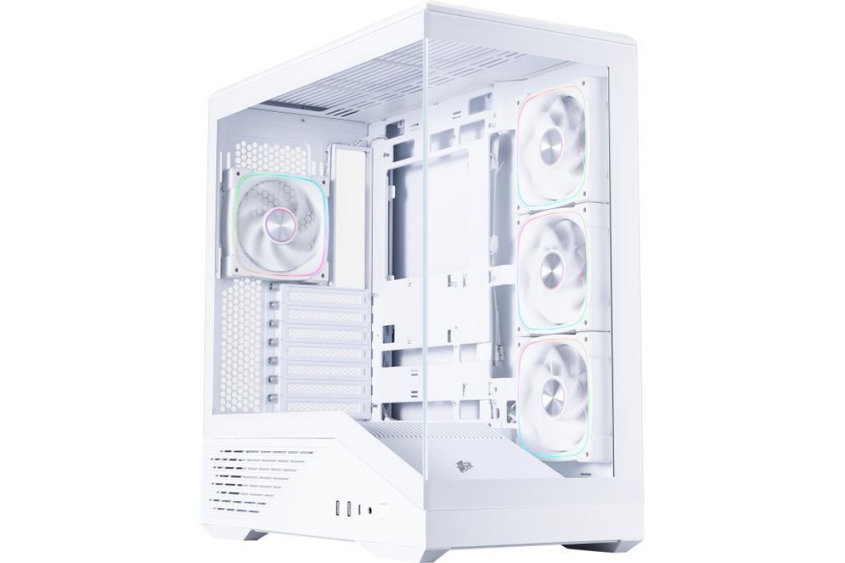 Завдяки панорамному огляду 270°, створеному за допомогою загартованого скла на передній та бічній панелях, корпус надає можливість милуватися кожним елементом вашої збірки без зайвих перегородок. Це рішення дозволяє спостерігати за красою внутрішніх компонентів, надаючи вашому ПК вигляд сучасного «акваріума».