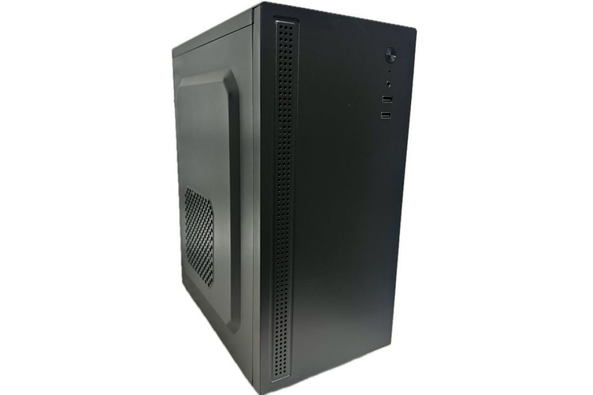 Для зручності користувача, передня панель оснащена всіма необхідними зовнішніми роз'ємами: 2x USB 2.0 та HD Audio для підключення різноманітної периферії – від гарнітур до зовнішніх жорстких дисків. Стильний чорний колір корпусу робить його універсальним варіантом для будь-якого інтер'єру, а його легка вага в 3,5 кг сприяє легкому транспортуванню та монтажу.
