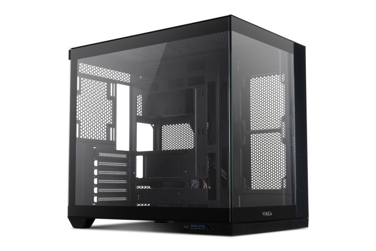Чорний колір корпусу надає йому стриманого, професійного вигляду, який легко прилягає до будь-якого інтер'єру. Із габаритами 415 х 378 х 285 мм, Vinga Request поєднує компактність з можливостями розширення, дозволяючи його зручне розміщення як у просторих студіях, так і в компактних офісах.
