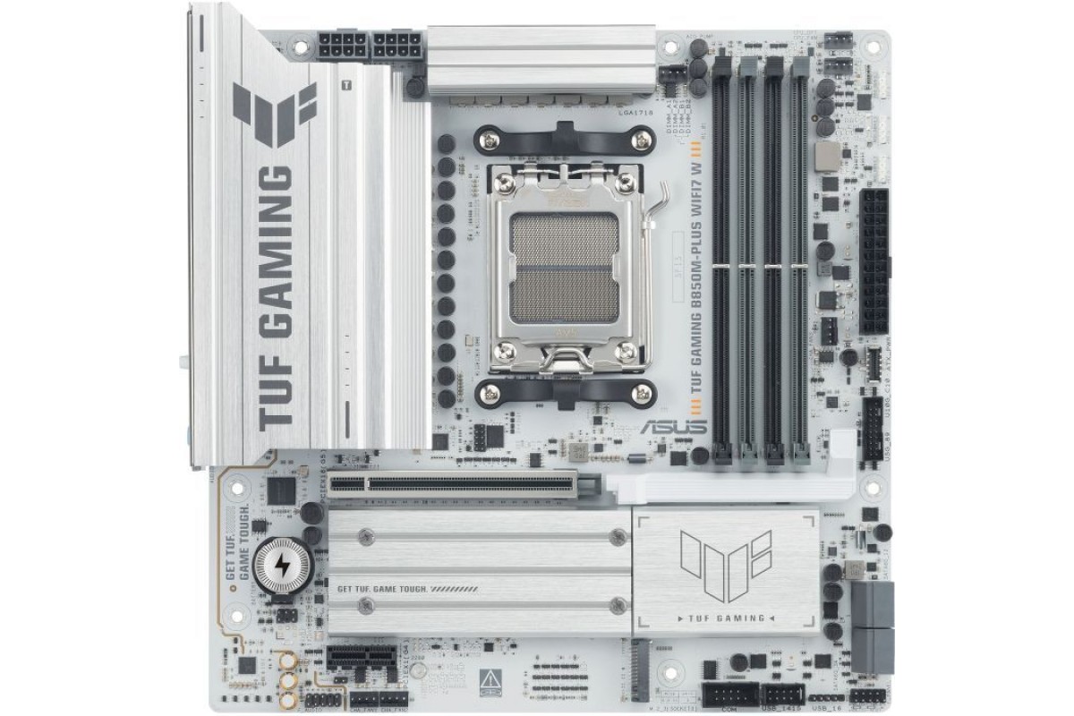 ASUS TUF GAMING B850M-PLUS WIFI7 W є не просто платформою для побудови комп'ютера, це основа для вашого захоплення і віра у свої можливості. Це справжній вибір для тих, хто шукає потужність, надійність та високотехнологічні рішення в одному пристрої.