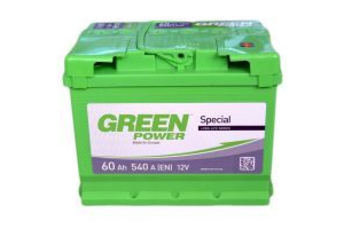 З напругою 12 В та місткістю 60 Агод, цей акумулятор є ідеальним рішенням для легкових автомобілів. Він забезпечує потужний пусковий струм до 540 А, що дозволяє легко запускати двигун навіть у важких умовах. Одна з ключових особливостей GREEN POWER – це підвищена стійкість до вібрації завдяки міцному пластику, з якого виготовлений корпус. Він не вступає в реакцію з електролітом, що значно подовжує термін служби виробу.